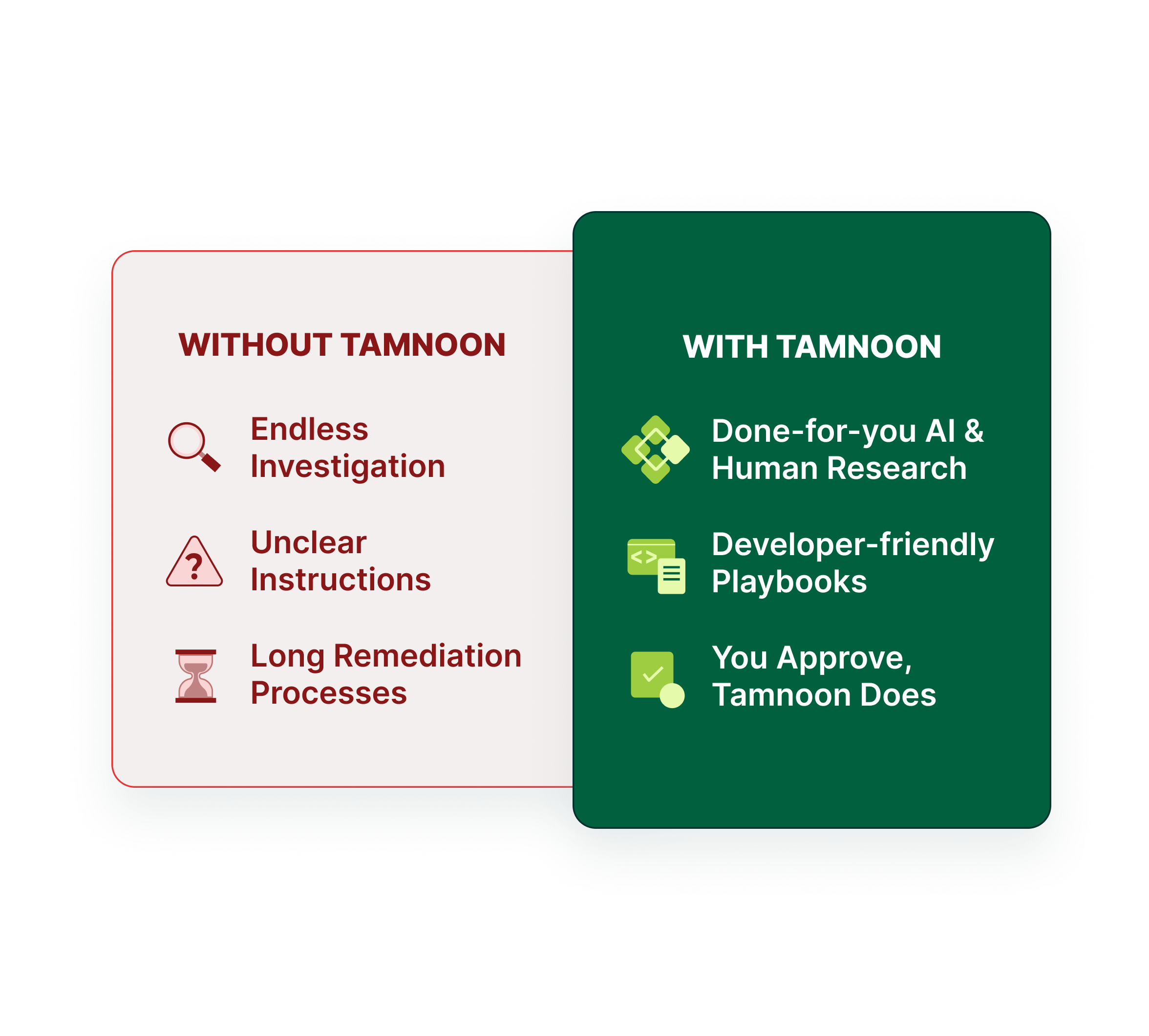 While Tamnoon’s AI is in charge of data wrangling and investigation work, our cloud security experts provide rich context and verify the AI does not go off-book, making sure your most critical infrastructure remains protected.